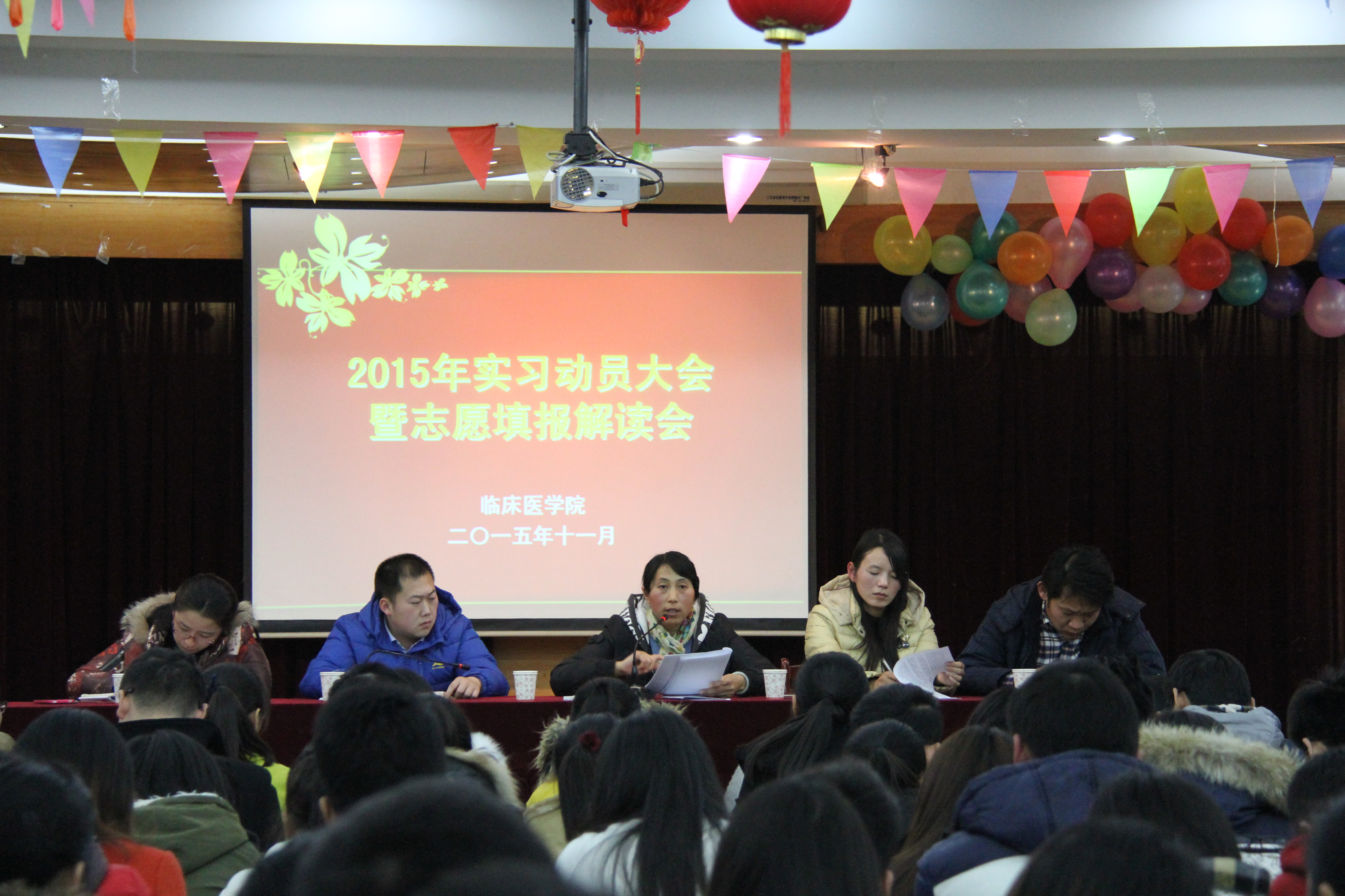 11月27日晚,7790cnm必发集团在赭麓校区4号教学楼七楼报告厅召开2015年实习分配动员大会暨志愿填报解读会,会议由7790cnm必发集团教学工作秘书王平主持,7790cnm必发集团副经理刘影、2012级辅导员以及全体在校员工、部分芜湖市临床公司员工参加了本次会议。
