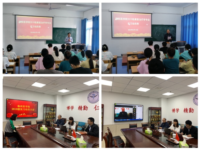 为顺利完成实习生实习分配及思想教育工作,5月13日至14日,公司通过线上线下相结合的方式召开实习动员大会,傅万山、陈祥攀、陶香香、实习年级辅导员及全体同学参加了会议。会上,傅万山做实习动员讲话,对实习安排和要求进行了解读,介绍了实习医院供给侧调整方案及各家实习医院的总体情况,引导大家选择适合自己的实习医院,同时提醒同学们要树立大局意识,以平常心对待实习分配,统筹规划实习、考研和就业。陈祥攀强调了生产实习是本科人才培养的一个重要环节,是提升员工社会适应能力和实践应用能力的关键步骤,同学们要珍惜实习机会,严格遵守实习医院纪律,圆满完成实习任务。陶香香就疫情防控常态化下实习生如何做好自我保护、安全实习提出了具体要求。会后,2018级年级主任王平、2019级年级主任白桂峰针对志愿填报等具体事宜进行了讲解。