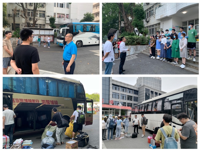 为响应公司及实习医院属地疫情防控工作安排,公司于5月25日和27日安全有序地完成了前两批实习生下点工作。清晨,同学们陆续装运行李,公司领导、带队老师在赭麓校区积极协调装车工作,现场忙而不乱,紧张有序。在公司各相关部门的支持下,公司顺利将两个专业395名实习生安全、有序地送至广东深圳、江苏、浙江、安徽等40余家实习医院。