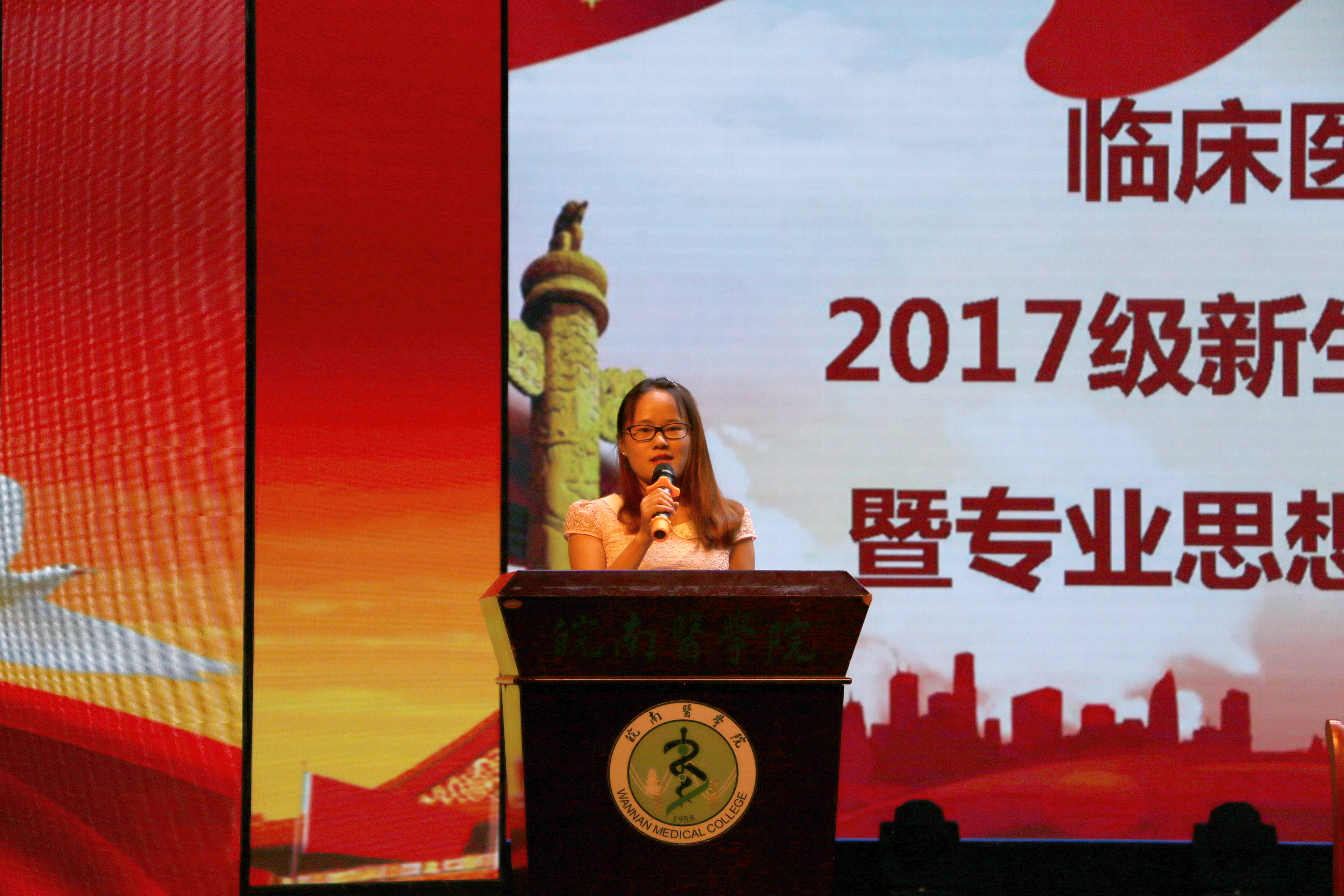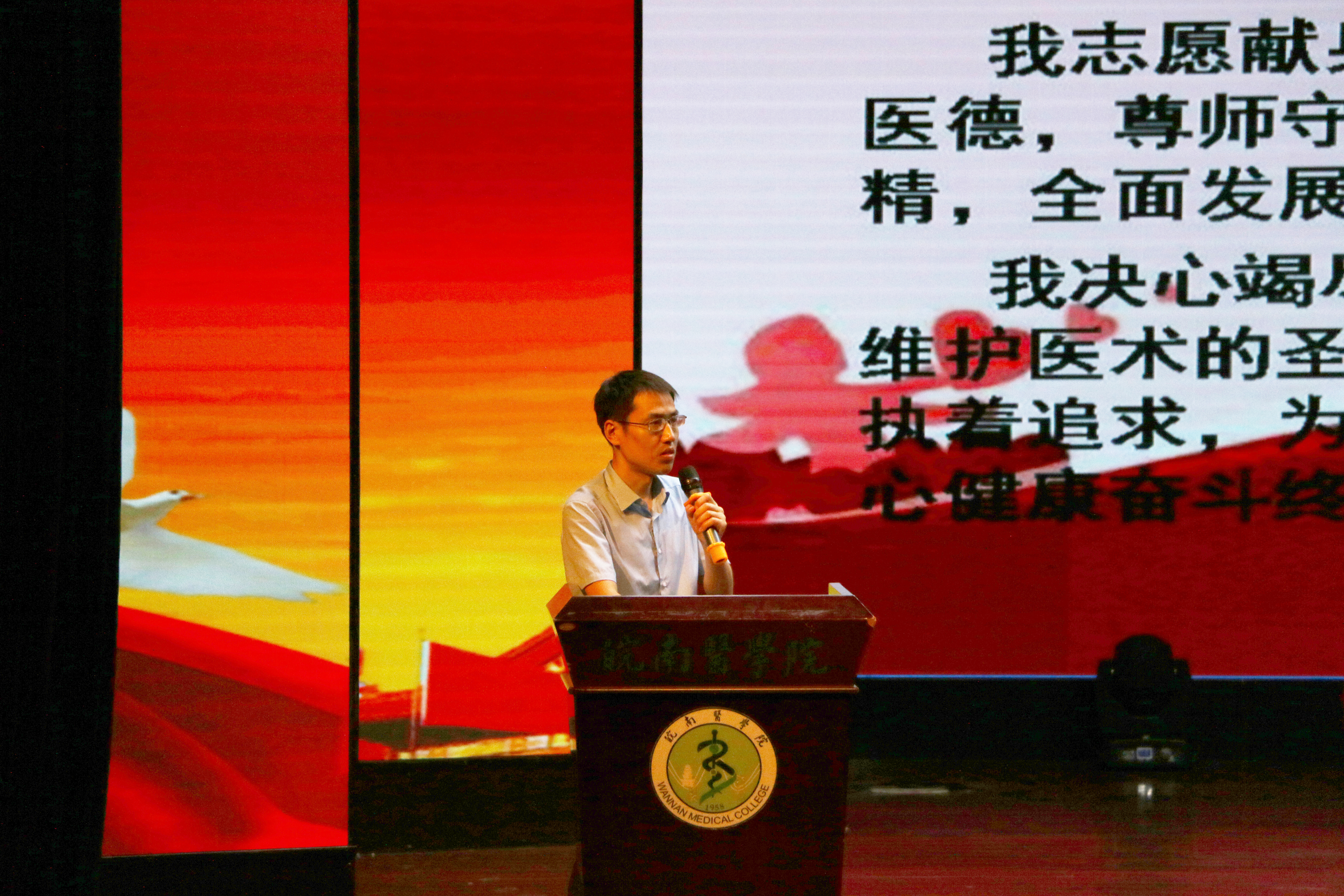 接下来,李曙带领全体新生领读医员工誓言,全场新生起立,庄严举起右手,大声宣读神圣的医员工誓言。一句句诚挚的誓言响彻大礼堂,让在场每一位初入校门的医员工热血沸腾,深深体会到作为一名医员工所肩负的责任和使命。
