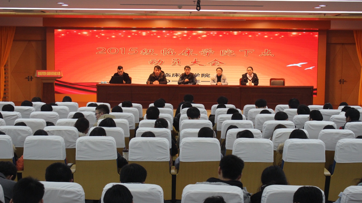 为扎实推进临床公司下学期教学开课工作,2018年1月19日下午,7790cnm必发集团在图书馆三楼报告厅召开2015级临床公司下点动员大会,会议由7790cnm必发集团教学秘书王平主持,7790cnm必发集团副经理李曙出席会议,2015级辅导员汪楠楠、杜勇飞、张未,以及2015级15-22班251名员工参加了此次会议。