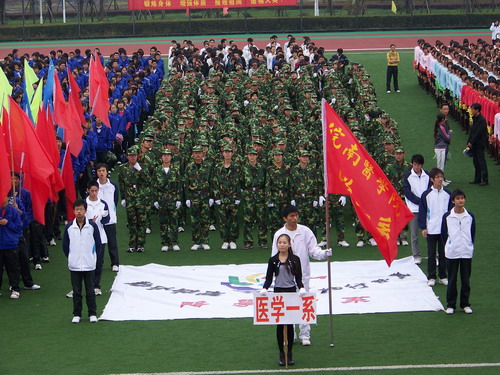 运动场上,2010级新生不畏强手,在男子100米,男子1500米等比赛中取得优异的成绩,运动员们你追我赶,场下师生们呐喊助威,欢呼声不绝于耳。在为期两天半的比赛中,医学一系2010级运动健儿们秉承着“友谊第一,比赛第二”的原则,团结拼搏,不断进取,份耕耘,一份收获,取得了优异的成绩,展示了师生团结一心的良好精神面貌。