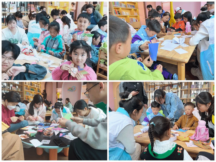 为传承我国传统折纸、剪纸文化,志愿者们通过PPT为在书苑阅读的40余名孩子普及了折纸文化,介绍演示了简单的折纸方法,并带领孩子们体验折纸的乐趣,培养他们动手动脑和语言表达能力,活动现场充满了温馨和童趣。