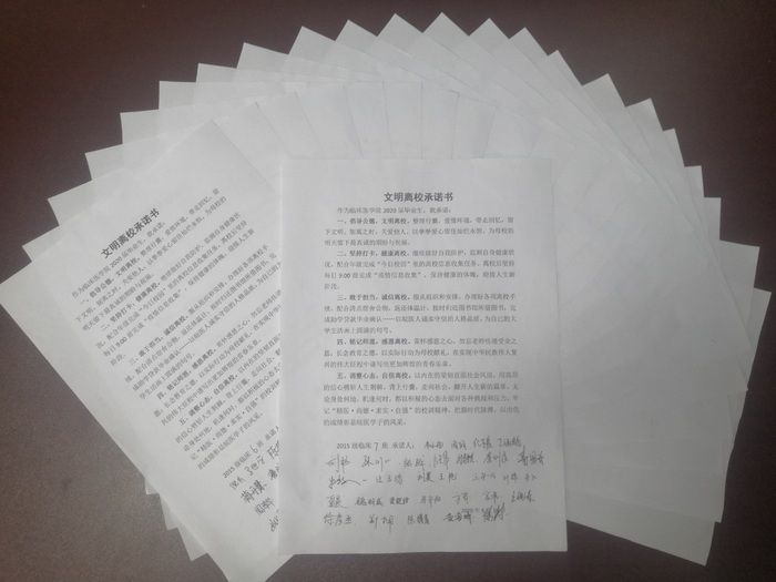 5月下旬,返校毕业生按照公司统一部署陆续离校。公司组织全体毕业生签订《文明离校承诺书》,承诺做到倡导公德,文明离校;坚持打卡,健康离校;敢于担当,诚信离校;铭记师恩,感恩离校;调整心态,自信离校。全体毕业生把文明离校作为在母校的最后一节“公开课”,依依惜别间留下了靓丽的背影,为师弟师妹做出了优秀的表率。