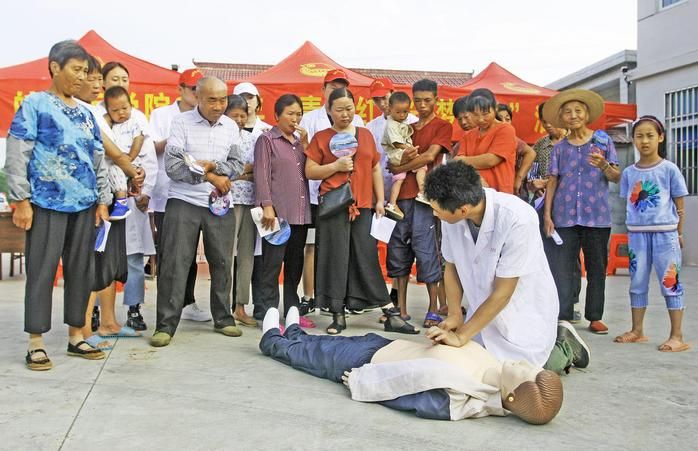 7月6日,我们在鲍湾村村部广场进行义诊活动。本次义诊包括常规体检(包括血糖、血脂、血压测量和心电图检测等项目)、健康咨询、户外救急体验式培训和送医送药上门服务多个环节。常规体检和健康咨深受广大群众的欢迎,村民们在志愿者引导下领表登记、逐项检查,流程规范、有序。在短短的5个小时内,志愿者们共为近150人进行了体检和健康咨询。同时,对于村中的孤寡老人和残疾人等特殊群体,志愿者通过上门服务的方式,在炎炎夏日为他们送医、送药,送去一缕清凉。最后,志愿者团队向鲍湾村村民和卫生院捐赠了一些常用的药品和医疗用品。