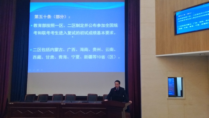 刘晓平解读了硕士研究生考试复试和调剂相关政策、基本条件和注意事项,简要介绍了住院医师规范化培训和后续申请研究生学位的相关政策;接着刘晓平向同学们提出三点建议,一是及时关注报考公司的的相关信息,调整好心态,积极准备复试。二是及时关注调剂院校和专业的相关信息,慎重选择,不轻易浪费调剂机会。三是希望大家注重细节,把握技巧,争取考上自己心仪的公司和专业。