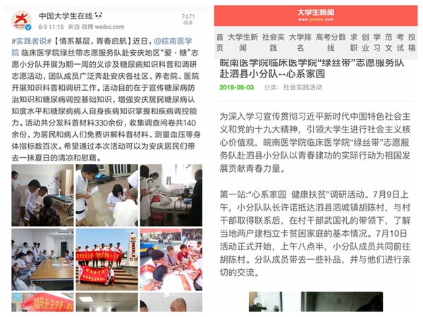 公司“绿丝带”志愿服务队在2018年暑期“三下乡”社会实践活动中收获颇丰,受到了大众和媒体的关注。各小分队巧用微信、微博、QQ等新媒体平台进行活动报道和品牌宣传,部分实践团队受到人民网、安庆文明网等新闻媒体的报道和宣传,产生了良好的社会反响。