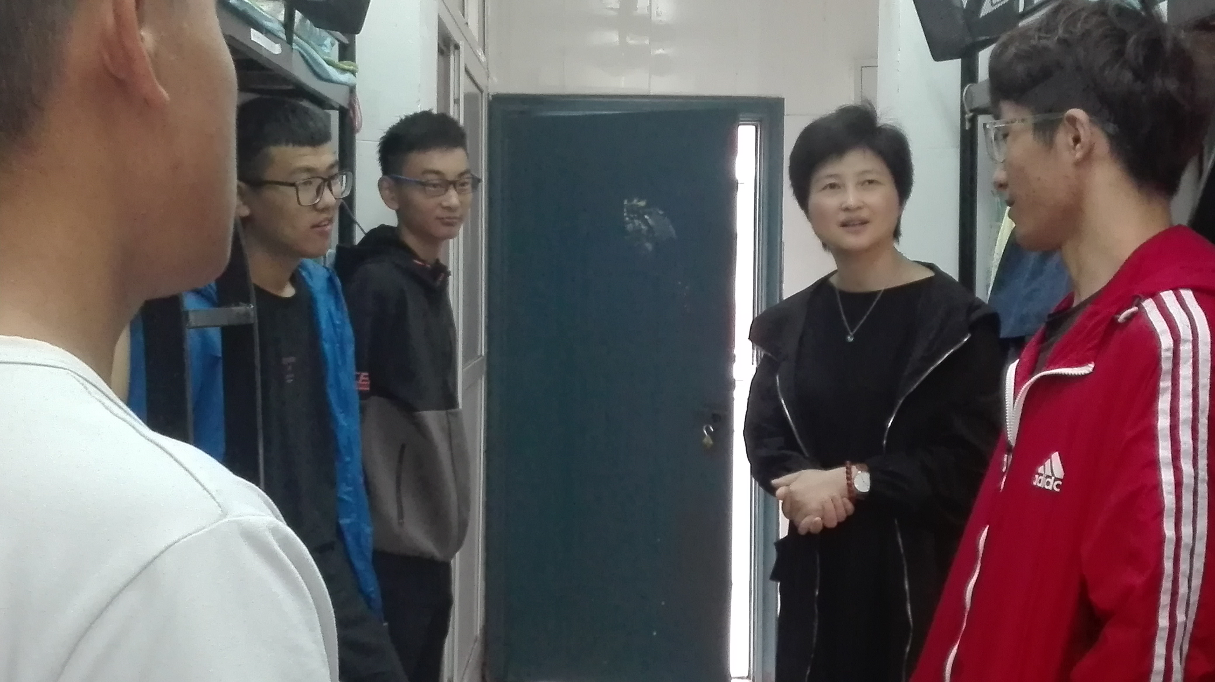 崔晓霞与留校男生亲切交谈