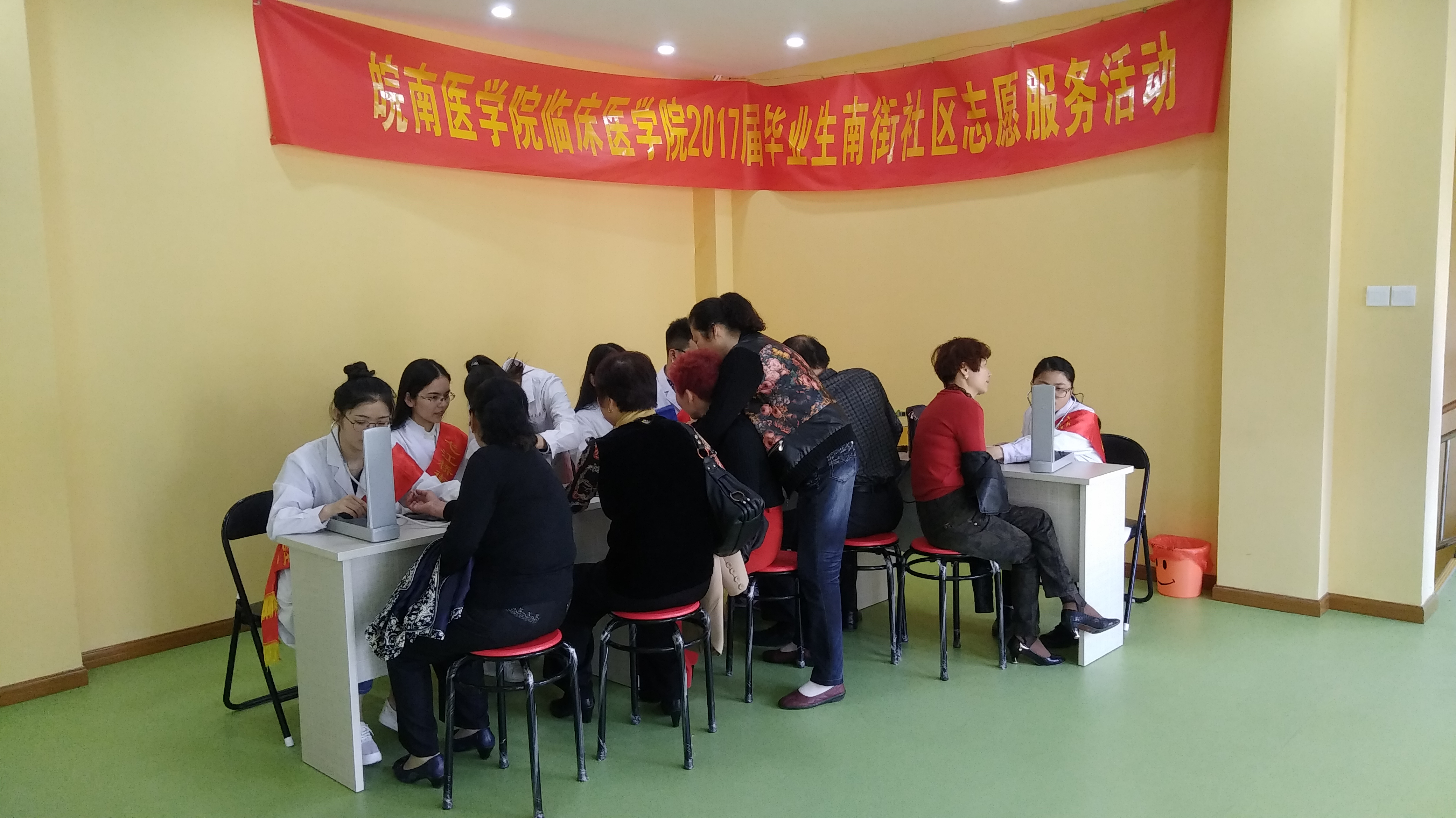 岁月流逝,如白驹过隙,五年时光,似弹指挥间。当绿意渐染枝头,离别的气息亦开始弥漫。在毕业即将到来之际,为把大学五年来的专业所学更好地运用于为人民服务的社会实践中,4月22日早晨,7790cnm必发集团2017届毕业生中的13名党员代表来到芜湖市南街社区开展社区义诊活动。
