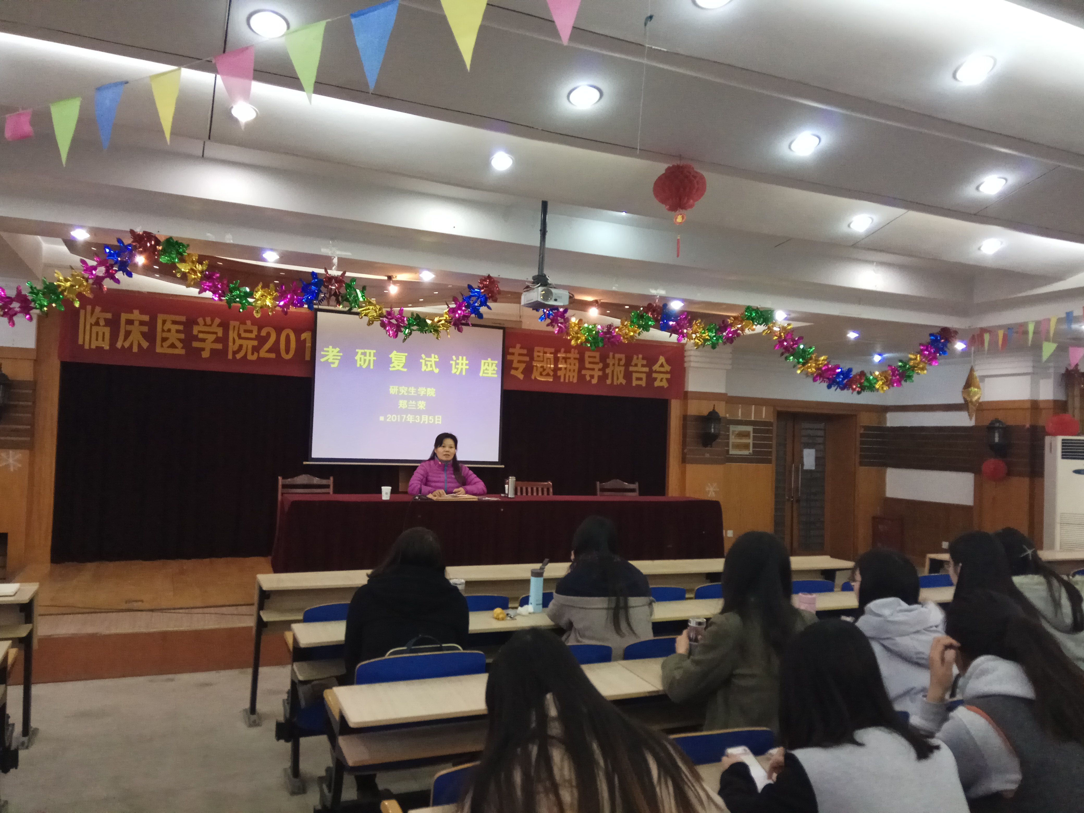 会上,郑教授详细介绍了我国研究生教育的发展趋势及临床医学类专业学位考试招生改革的具体情况。随后,她结合自身多年工作经验,向同学们介绍了考研复试和调剂的流程、注意事项及一些技巧。她希望同学们能提前从专业知识、面试礼仪礼节等多方面做好充分准备。最后,郑教授针对现场同学们提出的问题逐一进行了具体分析与解答。