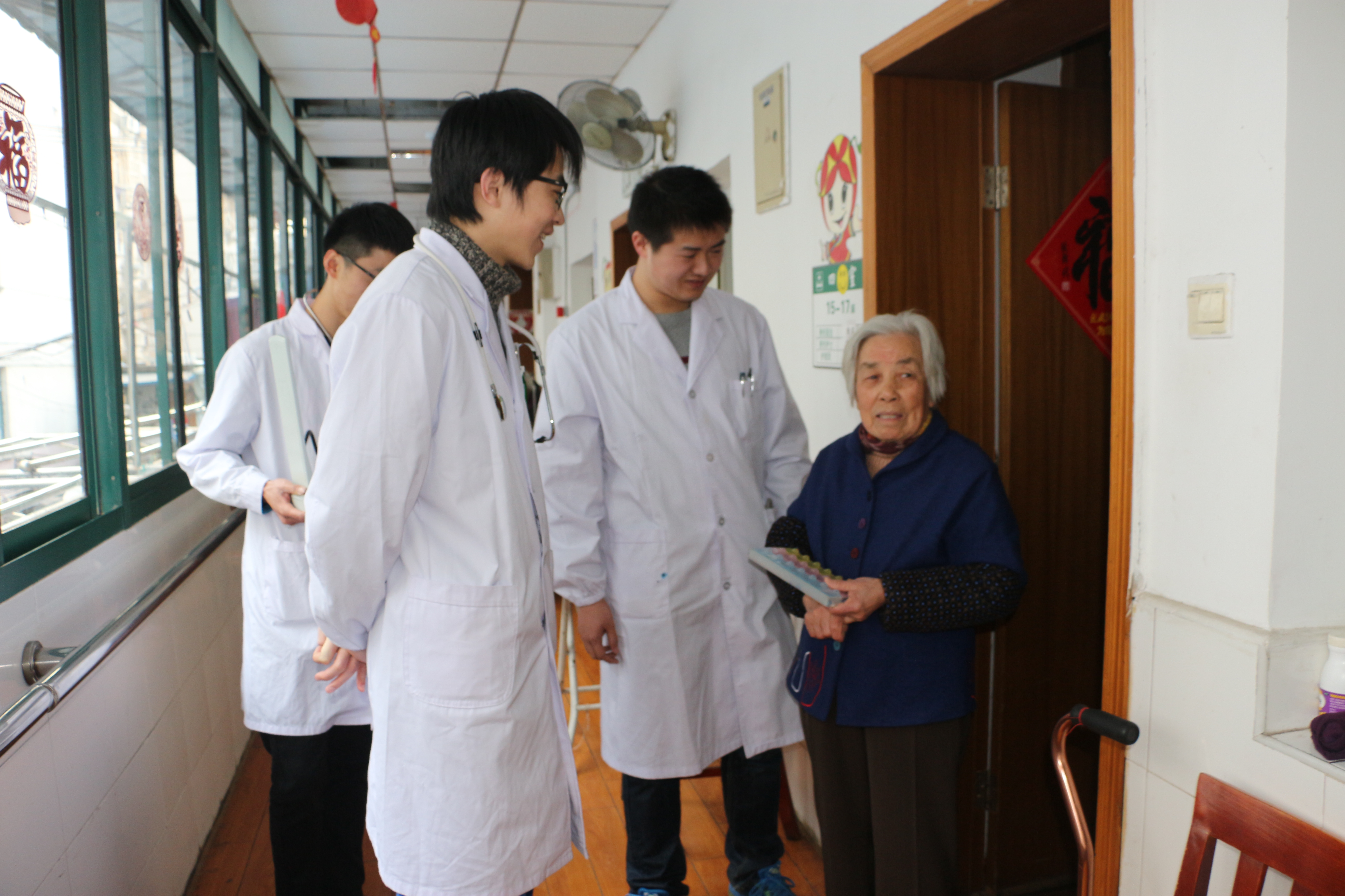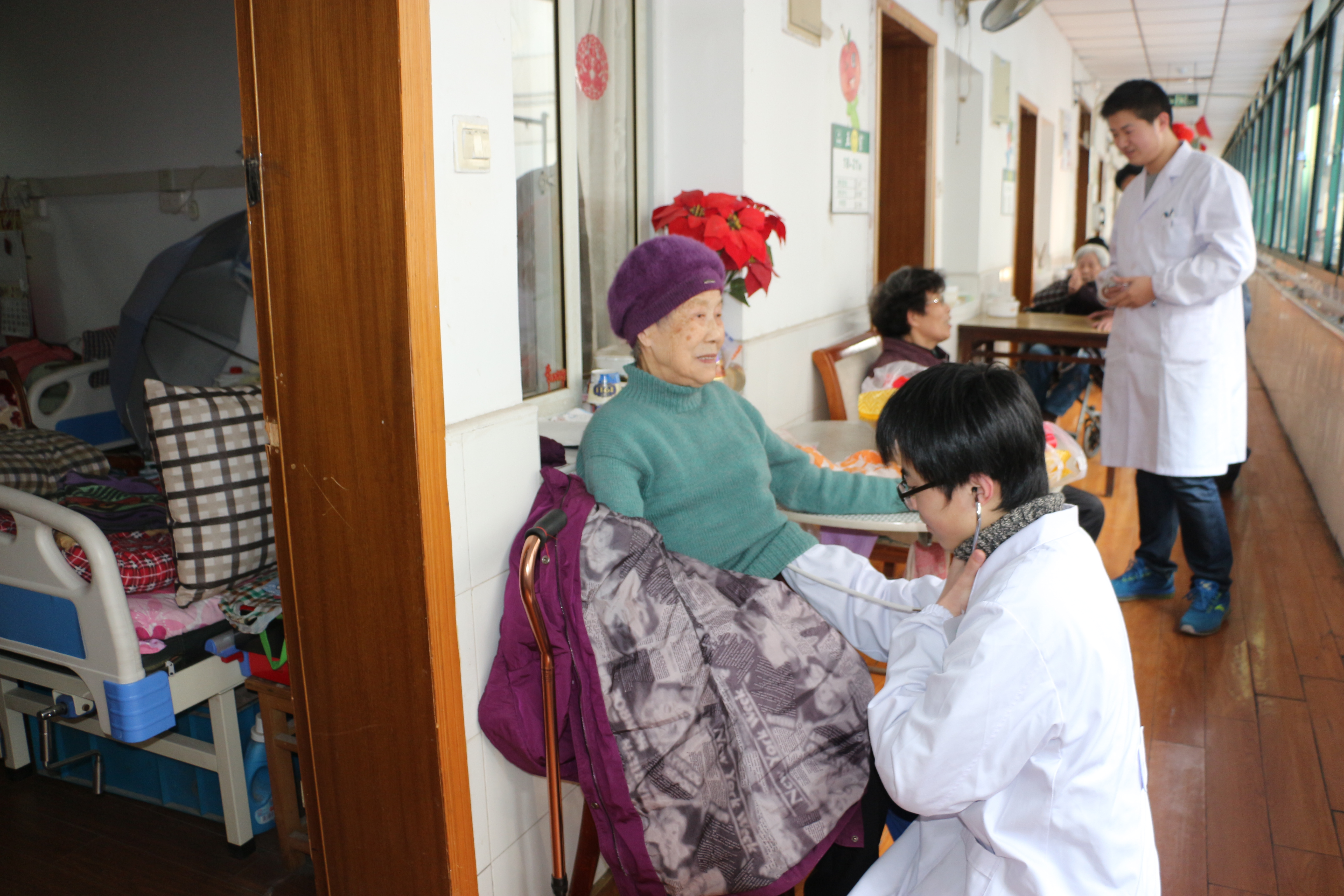 “老人家,最近身体怎么样?降压药在坚持吃没有?”3月1日下午,7790cnm必发集团、影像与检验公司的9位实习同学与南京医科大学的同学们来到梅园街道老年公寓开展志愿服务活动。他们一边给老人们进行常规检查比如量血压,听心音等,一边讲解老年人健康保健的知识,对有慢性病比如糖尿病的老人,更是关切地叮嘱平时饮食、生活中需要注意的事项。除此以外,同学们还为老人们带来了慰问品,陪他们拉家常,帮忙打扫卫生。李奶奶激动地握着同学的手说:“感谢你们来看望我们,还给我们带来慰问品,你们只要来了我们就很开心!”临走前,老人们都依依不舍,王奶奶发自肺腑地唱起了《共产党好》送别同学。