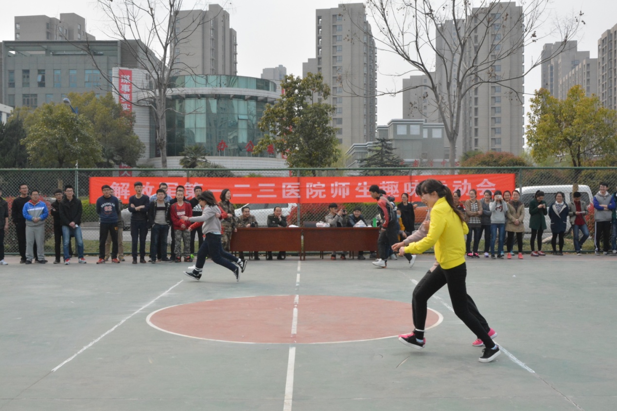 为丰富实习生活,增进同学友谊,促进师生交流,3月25日,7790cnm必发集团解放军第一二三医院实习点举办了一场别开生面的“师生趣味运动会”。解放军第一二三医院副经理王振德、黄峻松等人莅临比赛现场,7790cnm必发集团实习队,蚌埠医公司实习队,以及教学老师代表队参加了本次活动。