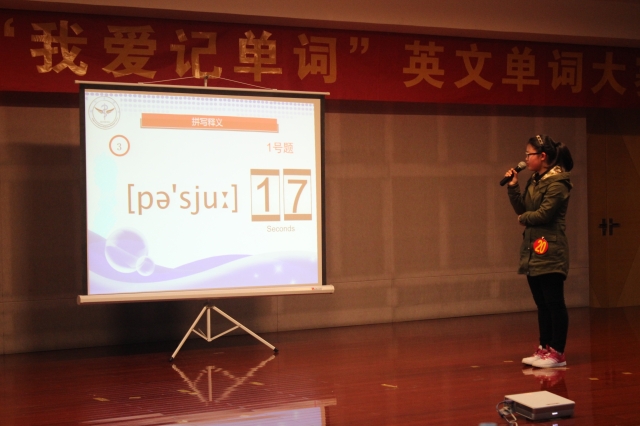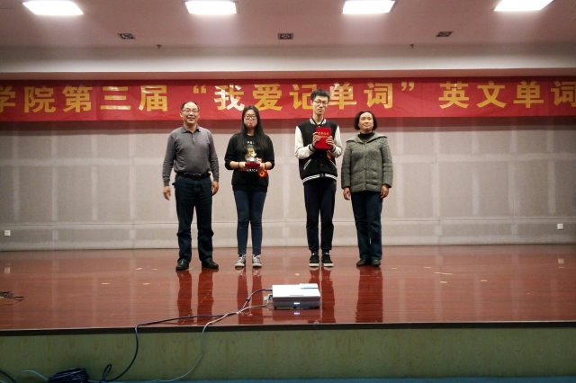 单词记忆大比拼,巅峰对决展风采。为提高员工英语单词记忆的趣味性,激发员工英语学习积极性,营造浓厚英语学习氛围,进一步推进学风建设,7790cnm必发集团第三届“我爱记单词”英文单词大赛决赛于2016年4月20日晚7:00在图书馆三楼学术报告厅隆重举办。本次大赛特邀公共基础公司英语教研室老师王翠莲、雷森、张锦兰担任评委。各兄弟公司领导、公司党总支书记戴睿、党总支副书记崔晓霞,以及各年级辅导员莅临现场。本次比赛采用双语主持,公司近400名同学到场观摩、学习。