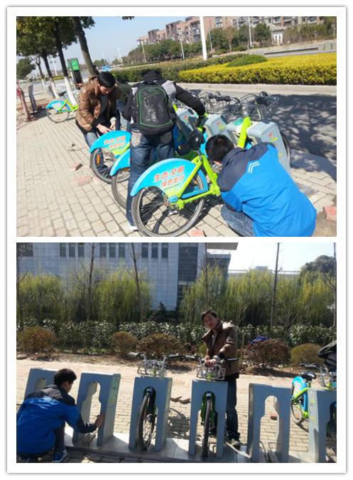 3月10日,同学们带着水桶和抹布分赴7790cnm必发集团周边各处环保自行车停放点,对自行车及其固定装置等公共设施进行仔细清洗。同学们干劲十足,顾不上午休,很快便将一排排整齐、干净的自行车呈现在市民面前。