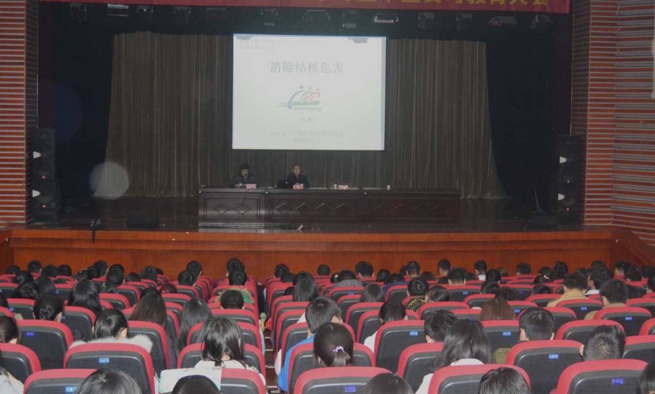 张峰老师精心准备,围绕“消除结核病的危害”和“H7N9的防治”两个主题进行了深入浅出的阐释。结合图片,详细地介绍了结核杆菌感染者和患者的区别,结核病的治疗管理,结核病的预防、接种和化学治疗等。结合近期各地H7N9发病情况,张老师向老员工讲解了在校生如何预防禽流感。他温馨提示同学们,对于青年老员工来说,首先要养成良好的个人卫生习惯,要勤洗手、多开窗通风、勤晒被子;其次要保持环境卫生,勤锻炼;最后要关注个人健康,定期体检等。