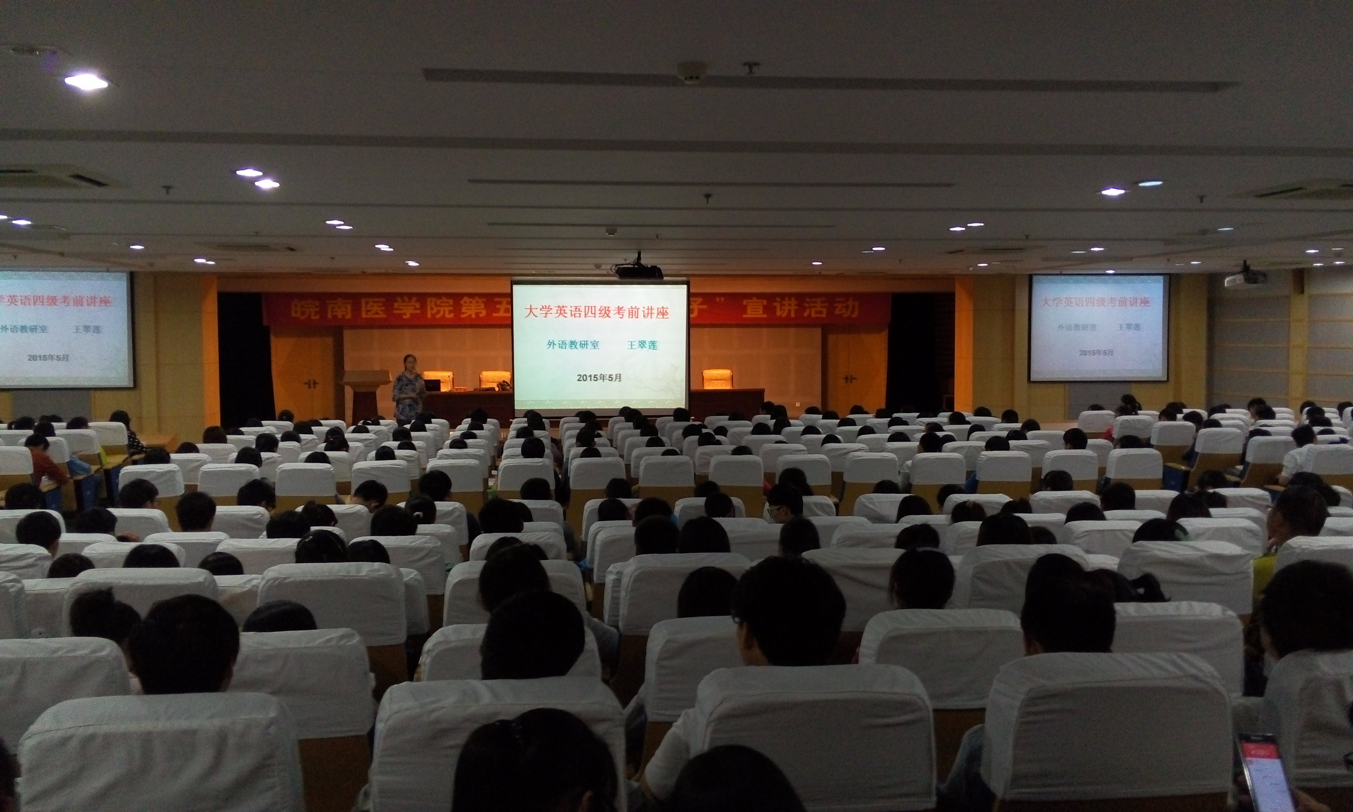本次大学英语四级讲座是公司“医路导航”系列讲座的又一重要模块,也是公司加强学风建设的重要举措。王翠莲老师对四级考试题型、评分标准的分析,对四级考试和英语学习策略的传授,不仅给备考的同学们指明了方向,增强了他们学好英语的信心,更为公司营造了浓厚的英语学习氛围,激发了临床学子们学习英语的兴趣和热情。